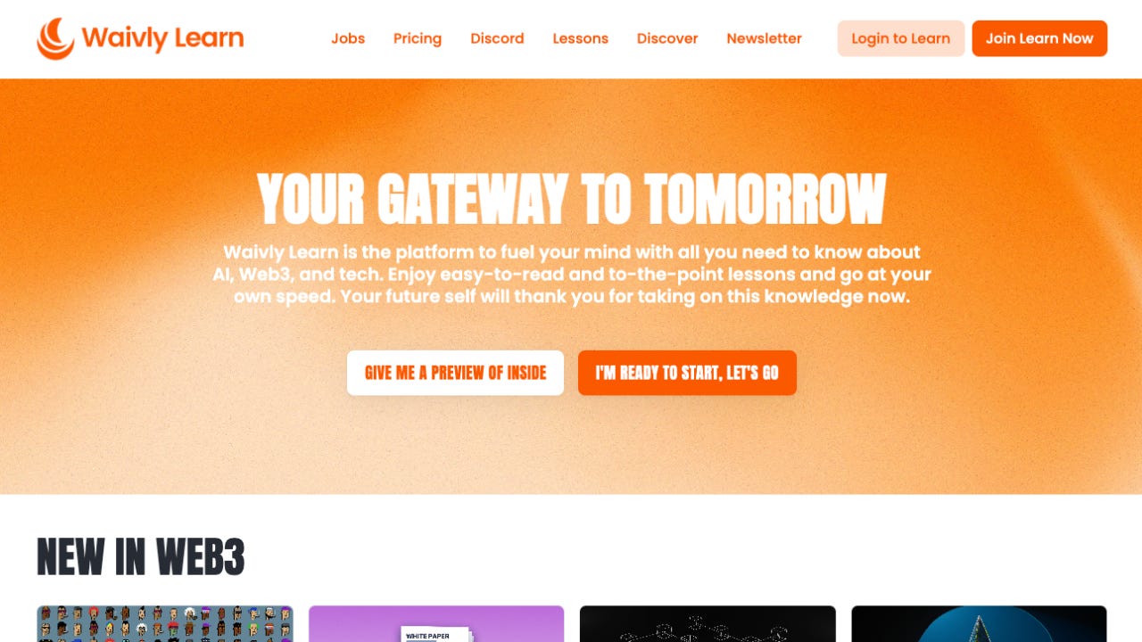 Weβve already empowered over 10,000+ minds through our content and we can not wait to help even more of you thrive on Web3, AI, tech, business, development, and more through Waivly Learn. Are you ready to dive in and to supercharge your mind? Join Learn now by clicking here or by clicking on the button below. Weβll see you over there!